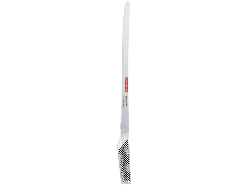 Couteau Ă jambon en acier inoxydable. Il est Ă©tudiĂ© pour assurer un Ă©quilibre parfait dans la main. Ces contours lisses et sa fabrication « monobloc » offre le nec plus ultra dans la sĂ©curitĂ© et l’hygiène.