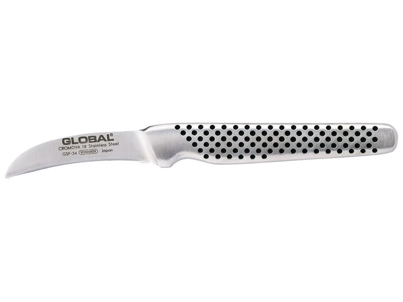 Couteau à peler, lame courbe, manche long en acier inoxydable monobloc. Il est étudié pour assurer un équilibre parfait dans la main. Ces contours lisses et sa fabrication « monobloc » offre le nec plus ultra dans la sécurité et l’hygiène.