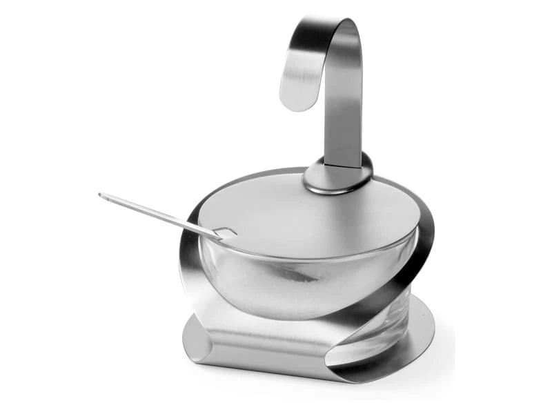 Fromagère en verre, bouchon, support et cuillère en inox poli 18/0.