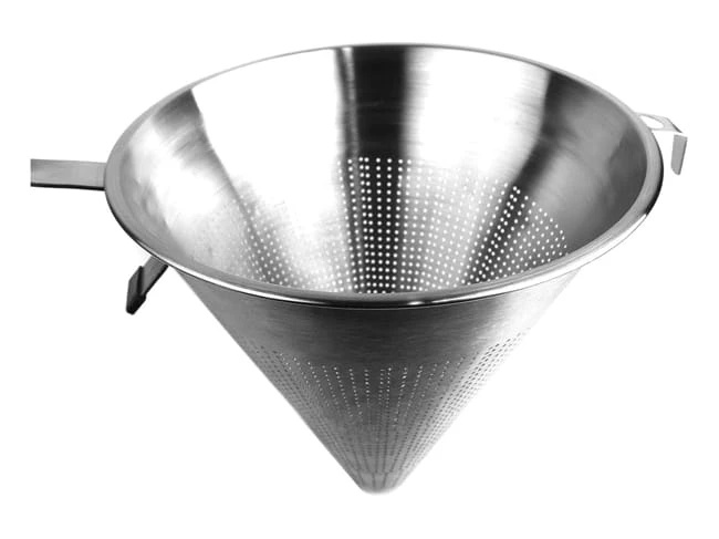 Chinois en acier inoxydable de forme conique, pour passer vos fonds de sauces, vos jus ou toutes autres préparations liquides.