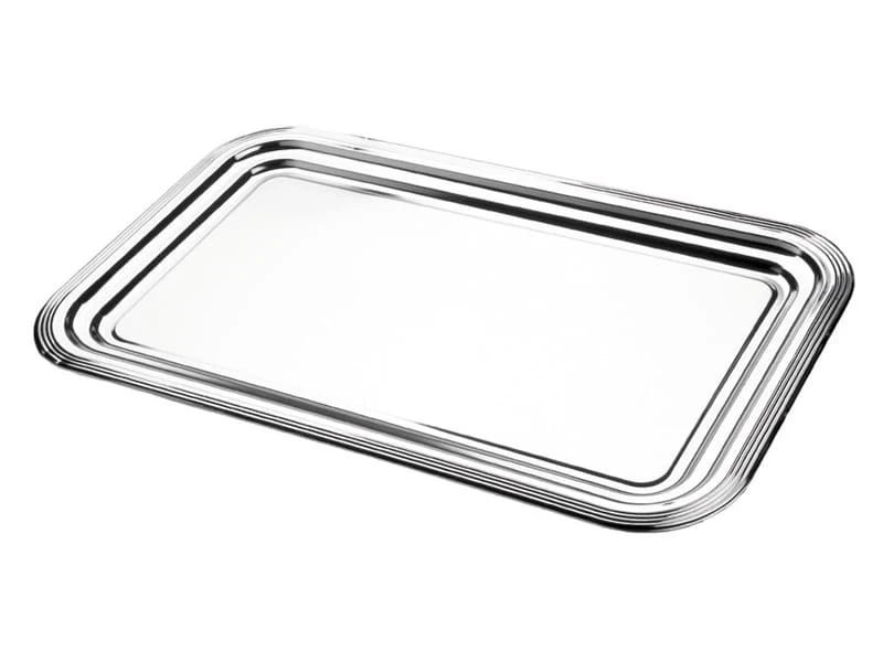 Plateau de présentation en métal nickelé et chromé.